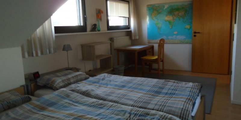- Schlafzimmer mit Doppelbett und Schreibtisch